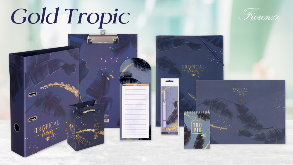 Папка-регистратор, А4, 75 мм, ламинированный картон, синий, Gold Tropic, FIORENZO, 231749