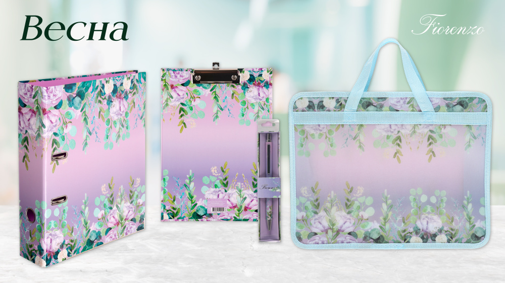 Папка-регистратор, А4, 75 мм, ламинированный картон, сиреневый, Весна, FIORENZO, 231745