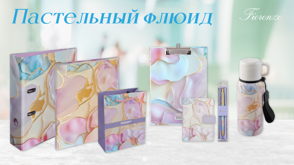 Папка, 20 файлов, А4, пластик, цвет с рисунком, Пастельный флюид, FIORENZO, 253458